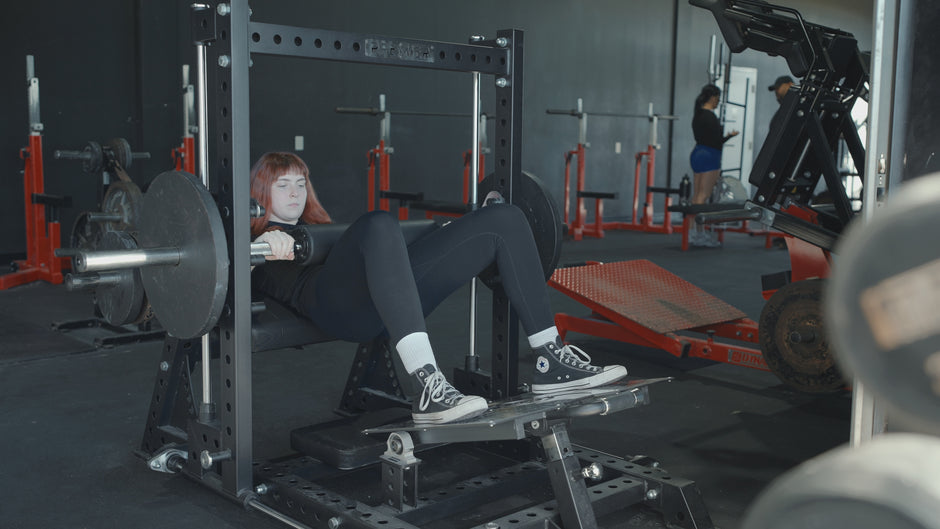 The adjustable platform allows you to fine-tune your body position — setting foot placement and back support height for optimal biomechanics and comfort during hip thrusts.